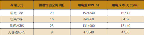 100万册藏量四种不同存储方式设备用电成本估算(年),参见表6。