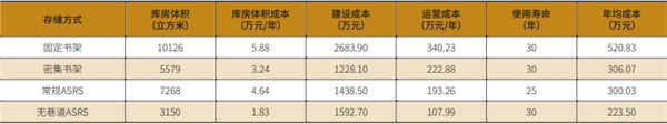 注:后续若无特殊标注,默认为常规AS/RS书库净高20m,无巷道AS/RS书库净高3.5m